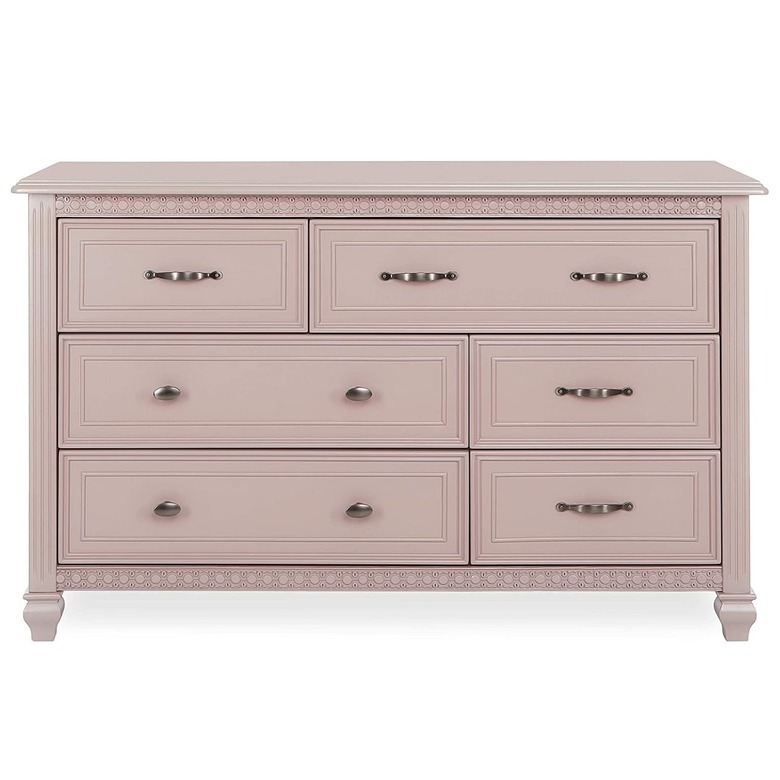 With its Art Deco details and dreamy blush hue, this dresser will add a touch of feminine elegance to any look. It features long-lasting dovetail joint construction and six drawers in different sizes to accommodate a wide range of storage needs. And if blush isn't your color, you can also purchase the dresser in a soft gray hue.
