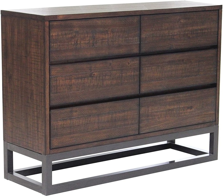 Made from solid wood with an open metal base, this dresser is the ideal complement to an industrial look. The six roomy drawers glide in and out with ease, and the top of the dresser can hold up to 100 lbs., so it can work double-duty as a television console.