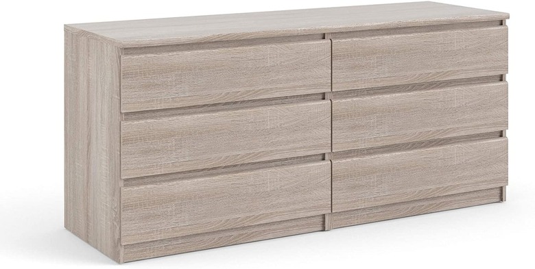 This dresser features a classic design that will complement virtually any aesthetic and never go out of style. It comes in four different finishes and features six drawers for ample storage. Plus, the bottom drawers are extra deep, making it a breeze to store bulkier items, like sweaters and blankets.