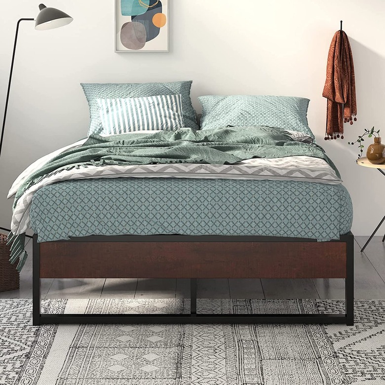 There's no reason that a great bed frame needs to cost a small fortune. This stunner is made from steel and accented with a warm wood veneer, offering long-lasting comfort and great style at a budget-friendly price. The frame's design is also highly versatile, allowing it to work with nearly any aesthetic and headboard, while its built-in wood slats mean that you never need to purchase a box spring.