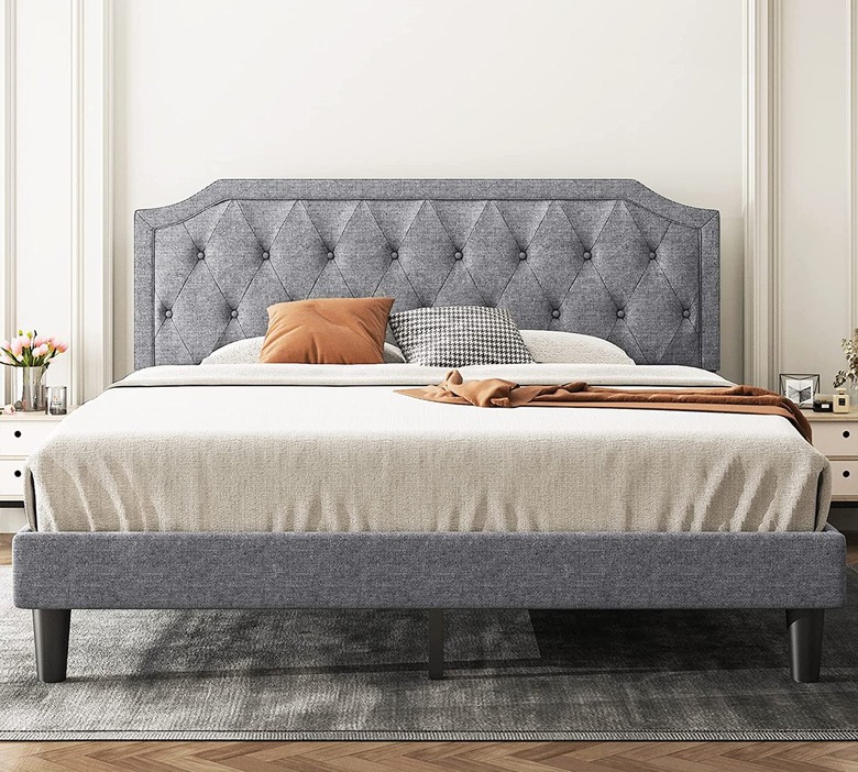 You simply can't go wrong with a basic upholstered bed frame, especially when it features a streamlined design like this one. The frame is accented by natural wood legs coupled with tight channel tufting on the headboard, which brings all kinds of textural goodness. It also comes in two sophisticated neutral colors, allowing it to complement a wide variety of aesthetics.