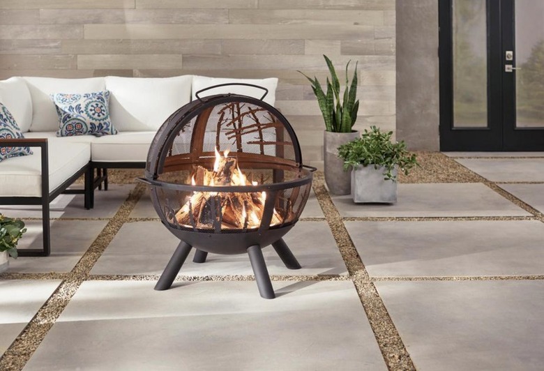 This fire pit from The Home Depot is completely unique. The round shape creates a beautiful, lit globe, and the tree branch pattern adds a whimsical forest touch. This fire pit comes with a spherical spark screen that offers 360-degree views and a porcelain fire bowl inside. It's 26 inches in diameter. With over 500 five-star reviews, this is one of The Home Depot's top-rated and reviewed fire pits.