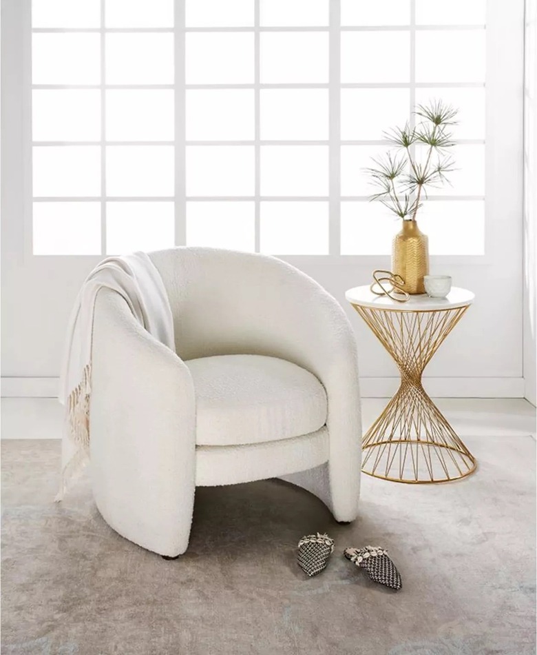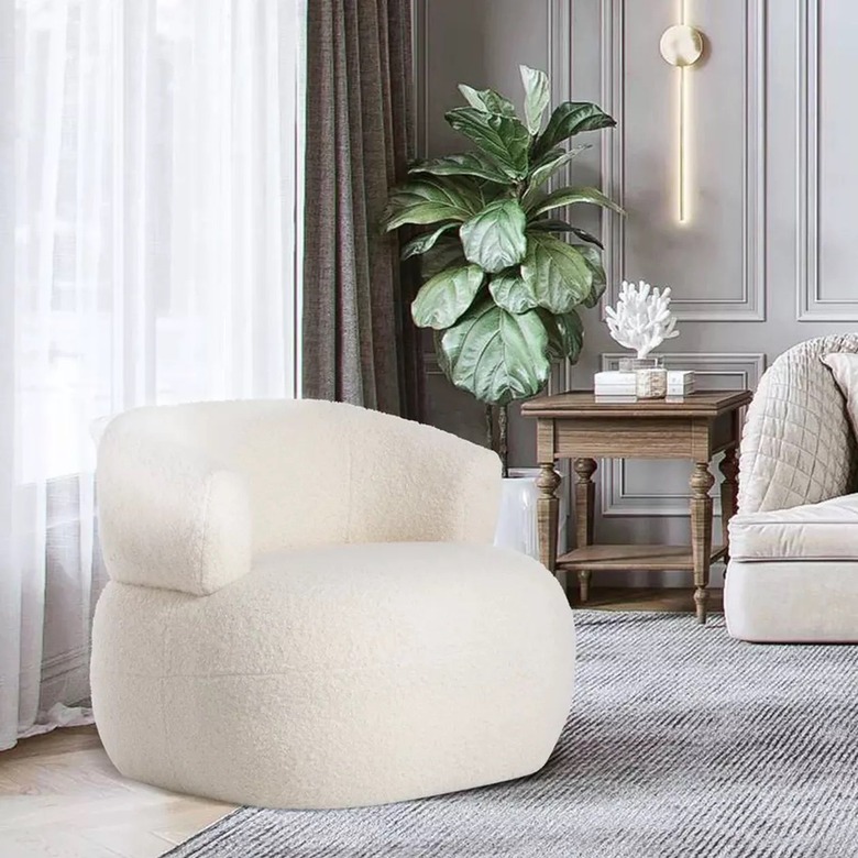 If you're looking to get a whole lot of bang for your buck, this is totally the move. Ringing in at just under $150, this bouclé accent chair looks shockingly high end.