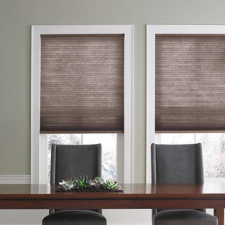 Cellular shades, also called honeycomb shades, have lots of vertically stacked air pockets, called cells, that create an insulating effect. Installing cellular shades is a way to block harsh sunlight in the summer, but they also help add a little insulation in the winter on drafty windows that let in cold air. In cooler months, the pockets hold warmer air in your home, and in the summer, they hold cooler, air-conditioned air in your room while helping to block the heat from the sun.