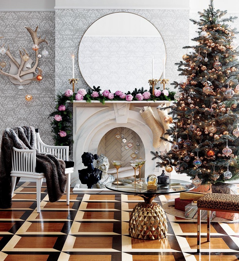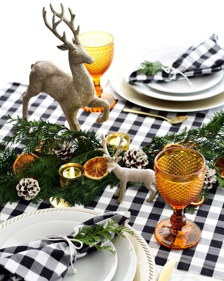 For a more contemporary look, @lardecormado has paired black and white plaid table linens with oranges — literal oranges! We think this is a delightfully fun spin on classic holiday patterns and motifs. (And check out those sparkly reindeer!)