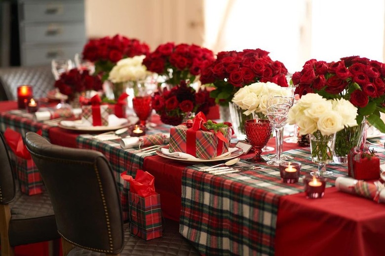 Red, green, and white are the colors of Christmas, and we love a traditional tablescape like this plaid one by @sandra.kaminski. Simply start with a plaid tablecloth as your foundation and go from there, adding plaid napkins and matching decorative objects.