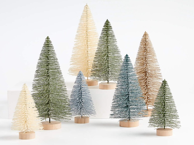 Nothing says cheers like a pop of sparkle. Adding dollops of tinsel-inspired decor like these mini brushed Christmas trees (Crate & Barrel, $50) heighten the festive atmosphere.