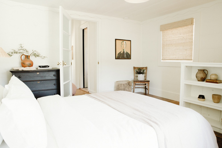Try and integrate feng shui elements into your bedroom in small ways, rather than making over your entire space. Maybe it's as simple as repositioning your bed or adding a new light fixture. Try an accent wall in a feng shui color that really speaks to you, like blue or green. Or maybe it's time to take the leap and move the TV out of your bedroom — you might discover that you sleep way better without it. Balance often comes from making small shifts in your decor rather than starting over completely.