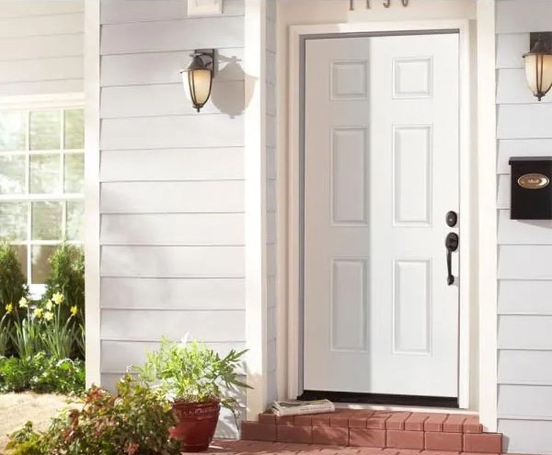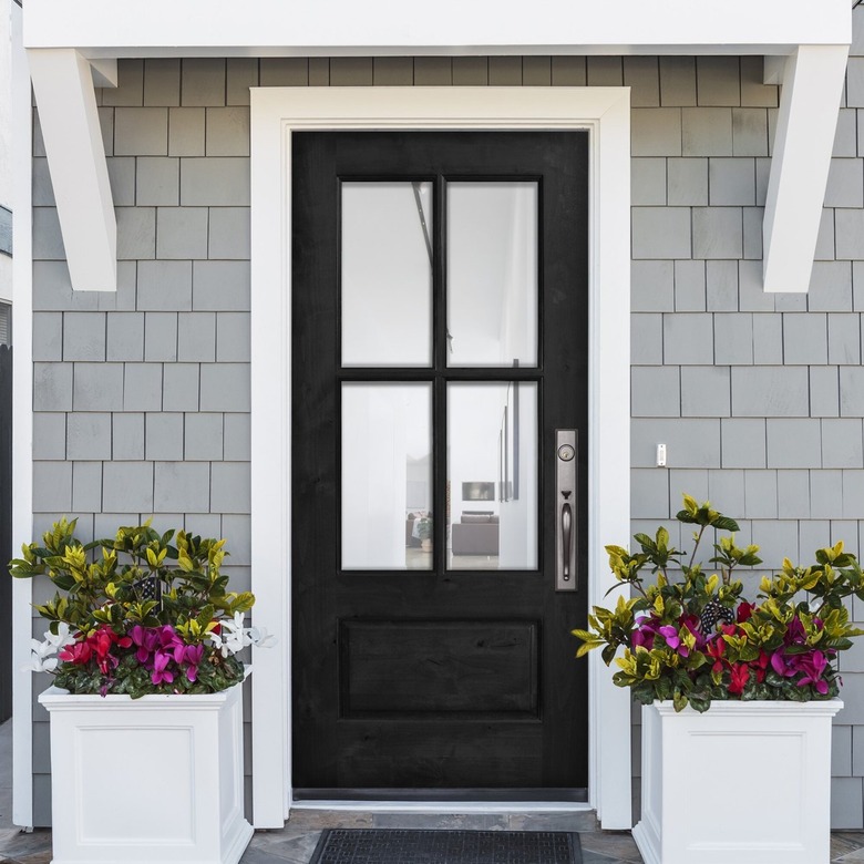 Rounding out the list of the three most common front door materials, fiberglass combines good performance with low maintenance. It won't dent, and it can be stained or painted to match your home provided you use the right kind of finish. Acrylic, polyester, polyurethane, and epoxy finishes are recommended (oil-based ones aren't), but since fiberglass doors come pre-painted in a number of colors, chances are you won't ever have to break out the paintbrush.