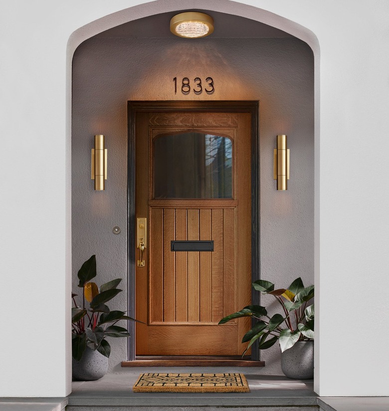 Although it's easier to have all the door hardware preinstalled, not having it gives you the opportunity to customize the hardware to your personal preferences. An entry door handleset, for example, gives your door a radically different appearance than a traditional doorknob, and while exterior door hinges are pretty standard, there are a few designer options. Functionality is also customizable. You can find plenty of keyed entry door locksets, but if you're the type who habitually misplaces your keys or you're a landlord, you may prefer a keyless one instead.
