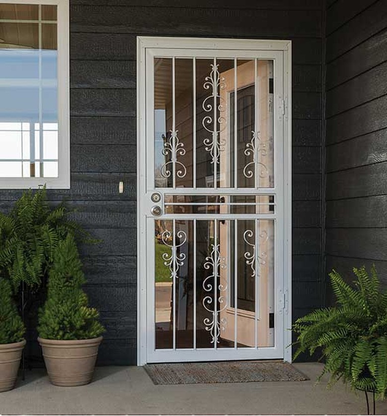 If you're concerned about break-ins, a security storm door provides extra peace of mind. Some security storm doors have decorative yet sturdy steel bars every few inches so there's no getting through the frame even if the glass or screen are breached. Security storm doors have enhanced features, such as sturdier latches and hinges that are difficult to remove as well as glass that's even more difficult to break than standard door glass.
