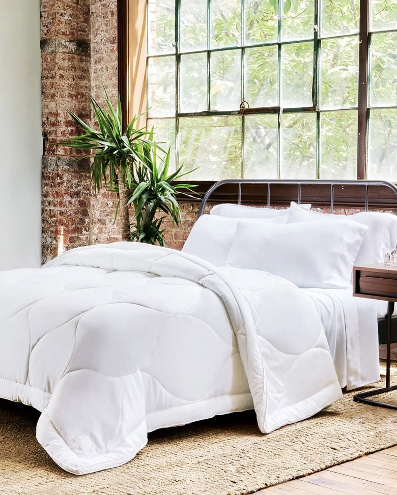 Cuddle up with this sustainable comforter, with the outside made of an eco-friendly lyocell fiber and the inside filled with a recycled fluff. Each comforter is reported to recycle around 50 water bottles and is 100% GRS-certified and BPA-free. The cloud comforter is the coziest blanket offering from the brand, featuring the most fluff, but despite the added comfort, you won't feel overwhelmed or overheated. The signature lyocell fiber keeps you cool and dry during the night, absorbing moisture more efficiently than a cotton alternative.