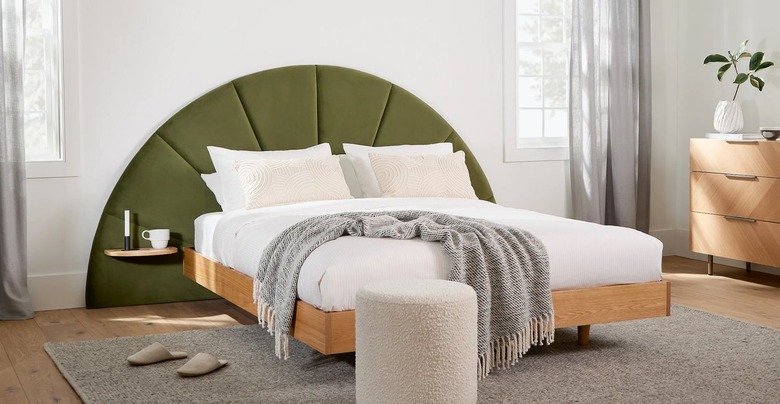 As seen in the Hunker House, Article's Almelo headboard is an eye-catching velvet centerpiece that gives any space a touch of art deco glam. It also has two built-in nightstands/shelves that are perfect for nighttime essentials or small home decor.