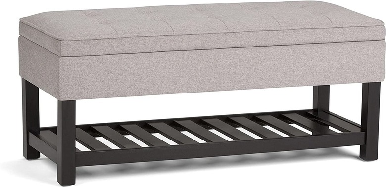 Give your entryway a refresh with this tufted, rectangular storage ottoman bench from Simplihome. In addition to having a comfortable padded seat, there's also storage space on the bottom — perfect for keeping shoes.