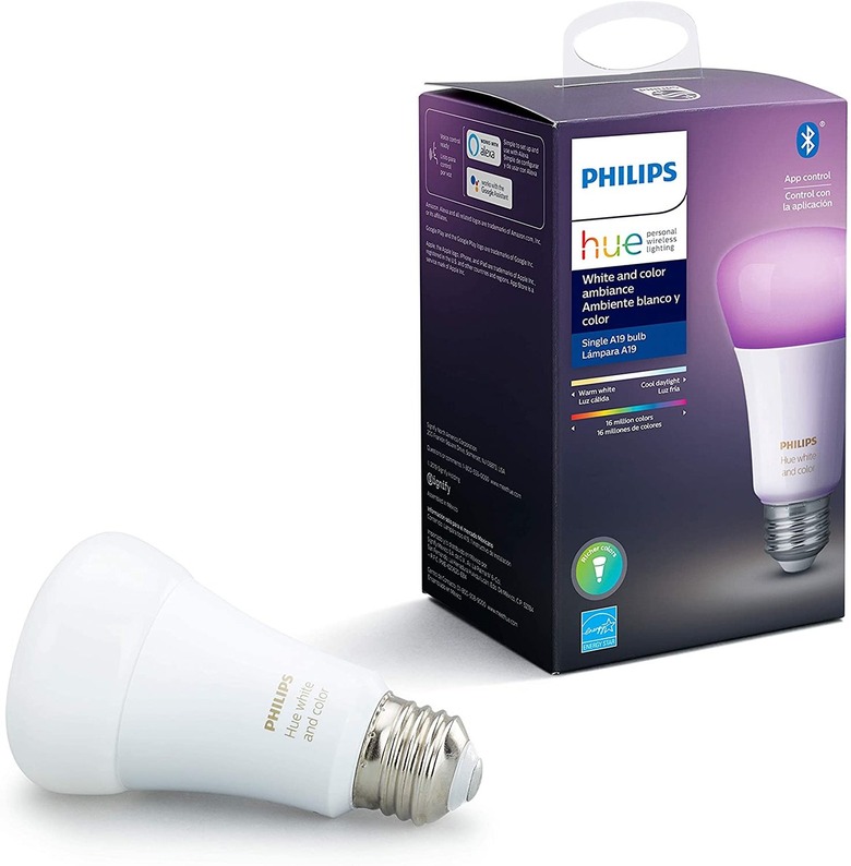 One of the most well-known smart light bulbs on the market, the Philips Hue White and Color Ambiance Smart LED Bulb offers 16 million colors to set the mood, is Bluetooth and Zigbee compatible, and works with Amazon Alexa and Google Assistant. With this dimmable, smart LED option, you can use preset light modes or create your own and control up to 10 smart bulbs on the Hue Bluetooth app or up to 50 with the Hue Hub ecosystem. They're also available in packs of one, two, three, or four, and in three lumen options, including 65 watts, 75 watts, and 100 watts.
