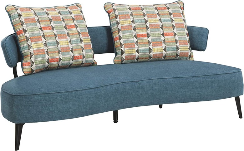 This curved loveseat is a major statement piece that will turn heads in your living room. It also comes with throw pillows to add playful patterns to the mix.