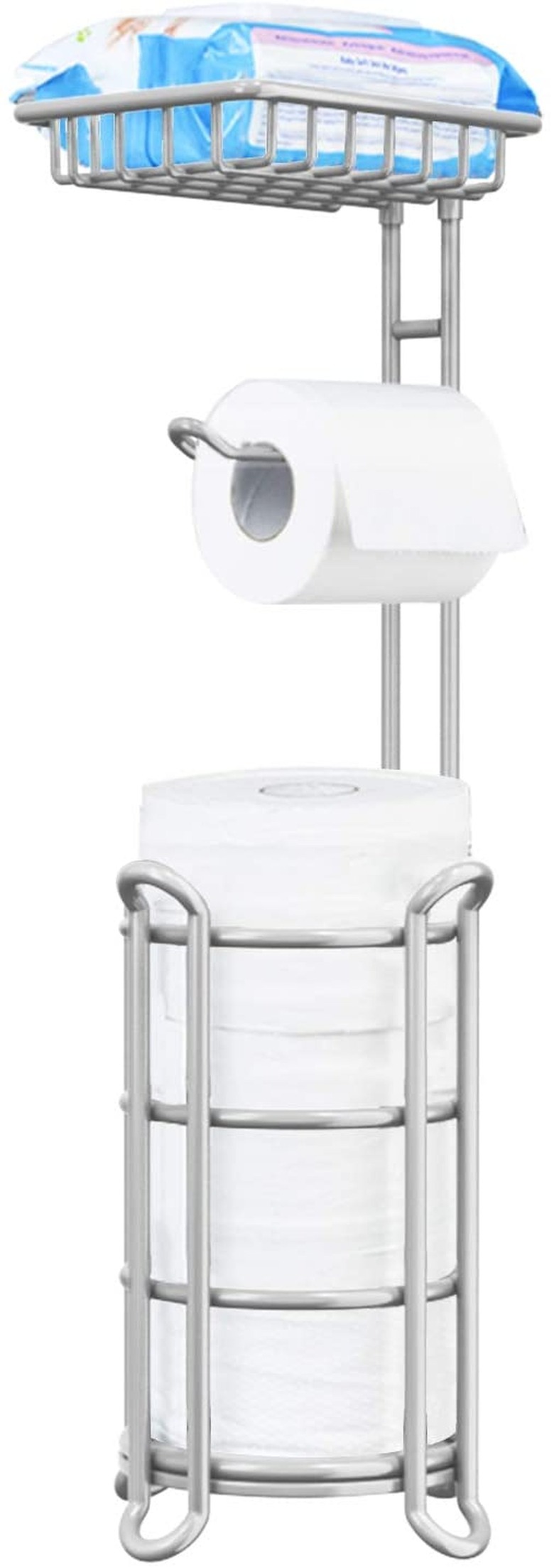 Always keep your toilet paper stocked and ready to use with this toilet paper dispenser. It has a compartment for extra toilet paper and extra storage space on top for everything from face tissues to wipes.