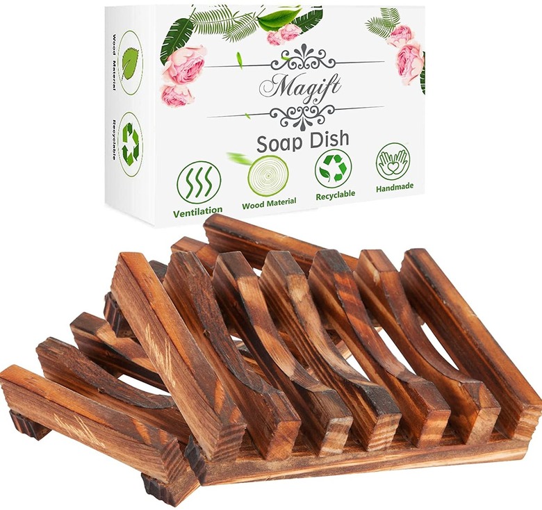 Whether you place it on your counter or in the shower, this wood dish is a stylish way to organize your soap.