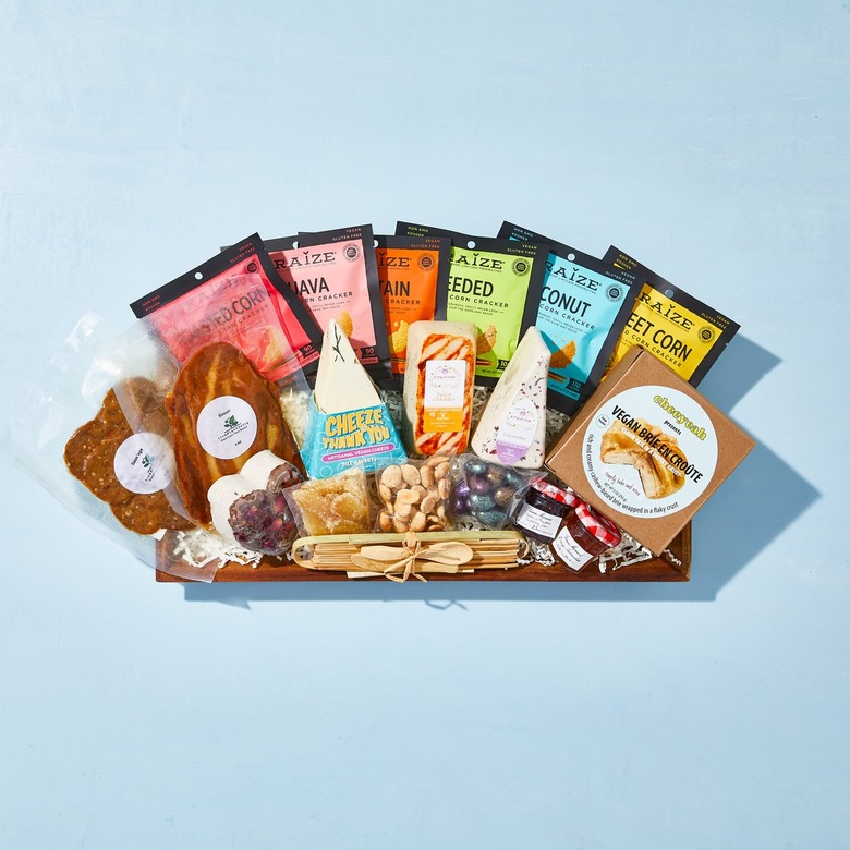 To try a vegan charcuterie board for yourself — especially if dairy-based cheeses also don't agree with your digestive system — you can purchase the Terra or Noci boards. If you'd prefer to try the one constructed by Marissa Mullen, you can find it here. A larger size of her design can also be bought here.