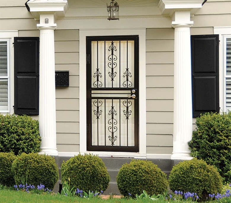 When security is a must-have, consider a security screen door for your entryway. These have a metal framework filled with a pattern of bars that provides security while letting air and light through. You can lock them at night and open the main door to take advantage of cool breezes. Because an intruder could break the screen and reach in to access a lock, these doors often include double-cylinder deadbolt locks that use a key from both sides. For safety, it's important to keep a key inside near the door so that no one can be locked inside during an emergency.