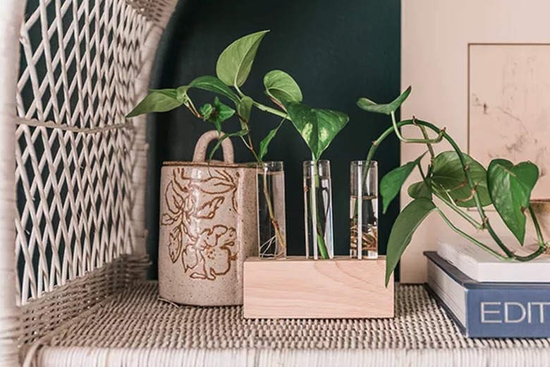 But Amazon isn't the only easy choice. Etsy offers a vast array of pothos as well. We are totally in love with FloridaPlantsGarden's 8-inch pothos offering for under $40. It's called "Pearls and Jade Pothos," and the leaves are special, lit up with spots of white, green, and grayish shades, with longitudinal white stripes on the green stems of plant. It is sure to give you a jolt of happiness every time you pass it. Also, West Elm has this beauty for $22 that would complement many of their gorgeous pots.