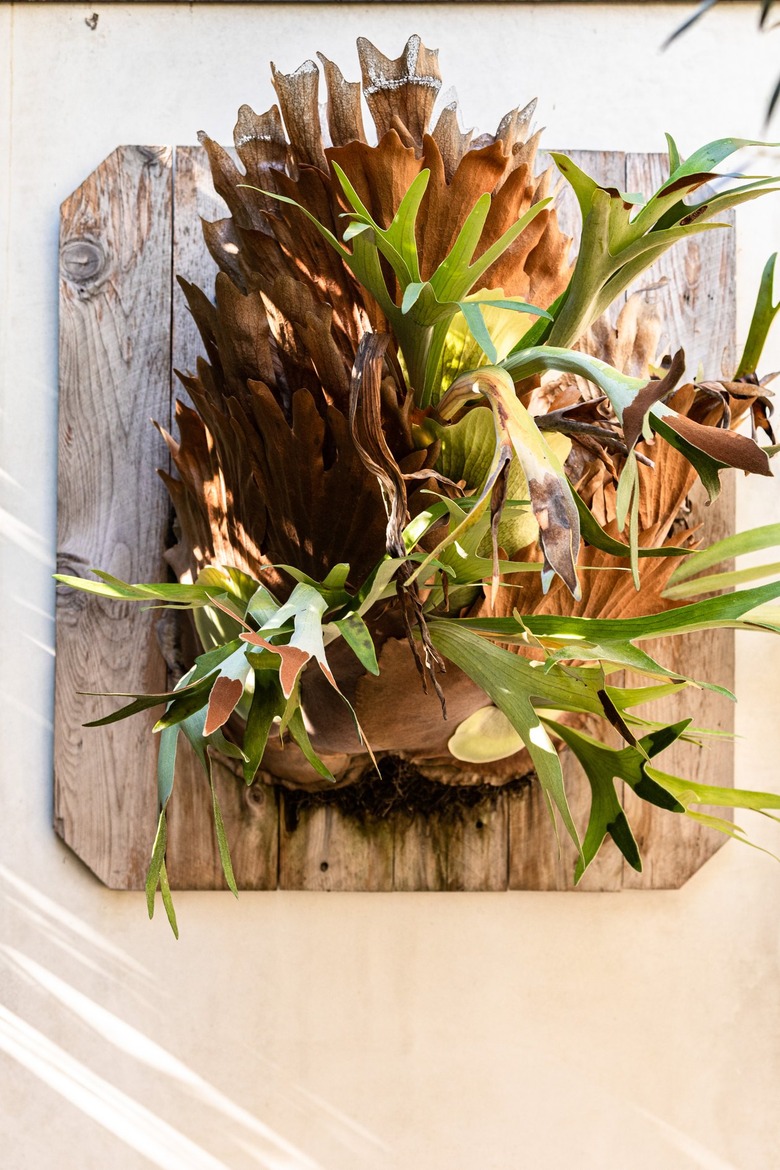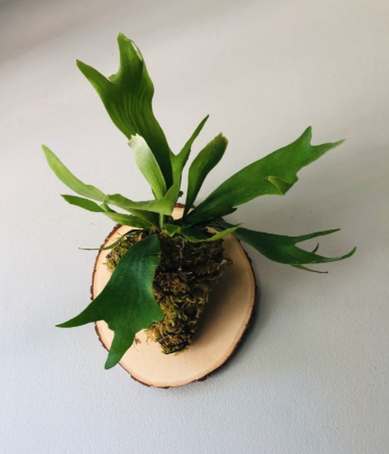 If you want a staghorn fern mounted on wood, Etsy's got it covered. BelleDecorPlants offers a large, live staghorn fern mounted on an attractive wooden plaque. This is custom-made and costs $56 with free shipping. Etsy offers many alternative choices if this doesn't appeal to you. Another wood-mounted staghorn we like is from LJNursery. It costs $37, but you'll also have to pay shipping.