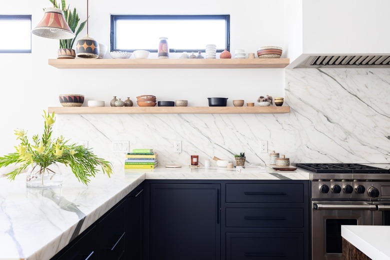 "I'm seeing a lot more gravitation toward countertops with movement and interest. People aren't worried about damaging a beautiful piece of stone," Nicole R. Fisher of BNR Interiors tells Hunker. "It's a work of art and just like a great leather chair, it gets better with age. Plus, the more movement and variation, the easier it is to hide those accidental coffee rings."