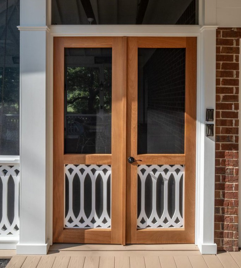 Screen doors come in metal (usually aluminum), vinyl, and wood, and installing any one of them on your front door can increase your home's curb appeal. Most even come with all the hardware you need for installation.