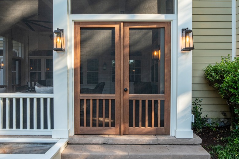 A screen door is essentially a framed panel with screen covering the majority of the door length or just the top half. These doors let fresh air and light into the home while keeping out unwanted insects and critters, but that's about all they can do. The doors have only a few components: the frame, the hinges, the closer, and the screen. The frames are most commonly made of aluminum or wood, but they can be made from other materials, such as vinyl.