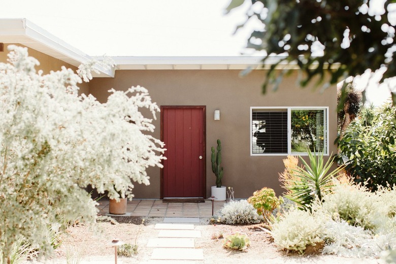 Stained wood doors require a lot more work to refinish since you first need to strip off the old finish with a chemical stripper, sand the door, apply stain, and seal the door with three coats of varnish. Look for a varnish with an ultraviolet inhibitor to protect your door from the harsh glare of the sun, as it can keep the color vibrant for as long as possible. Alternatively, you can use an alkyd-based oil paint after sanding the door if you prefer a solid color over the natural wood. This kind of paint will provide the best protection against the elements, but it is a little harder to work with than water-based paints.