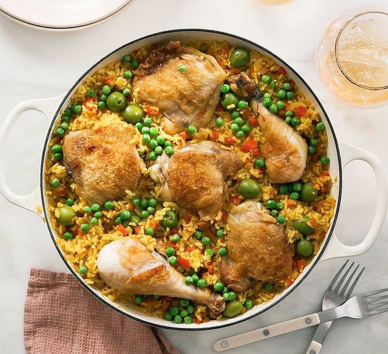 Equal parts easy and elegant, this one-pan "marry me" chicken will impress your guests. And for good reason, too — it consists of succulent chicken swimming in an herby and creamy sauce. It also calls for Parmesan cheese, sun-dried tomatoes, and olives (aka three ingredients that always work well together).
