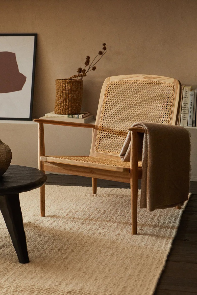 At under $500, Zara hits the quintessential rattan chair out of the park. This is as classic as it gets — a teak frame with rattan webbing for the seat and back make it a stand-out.