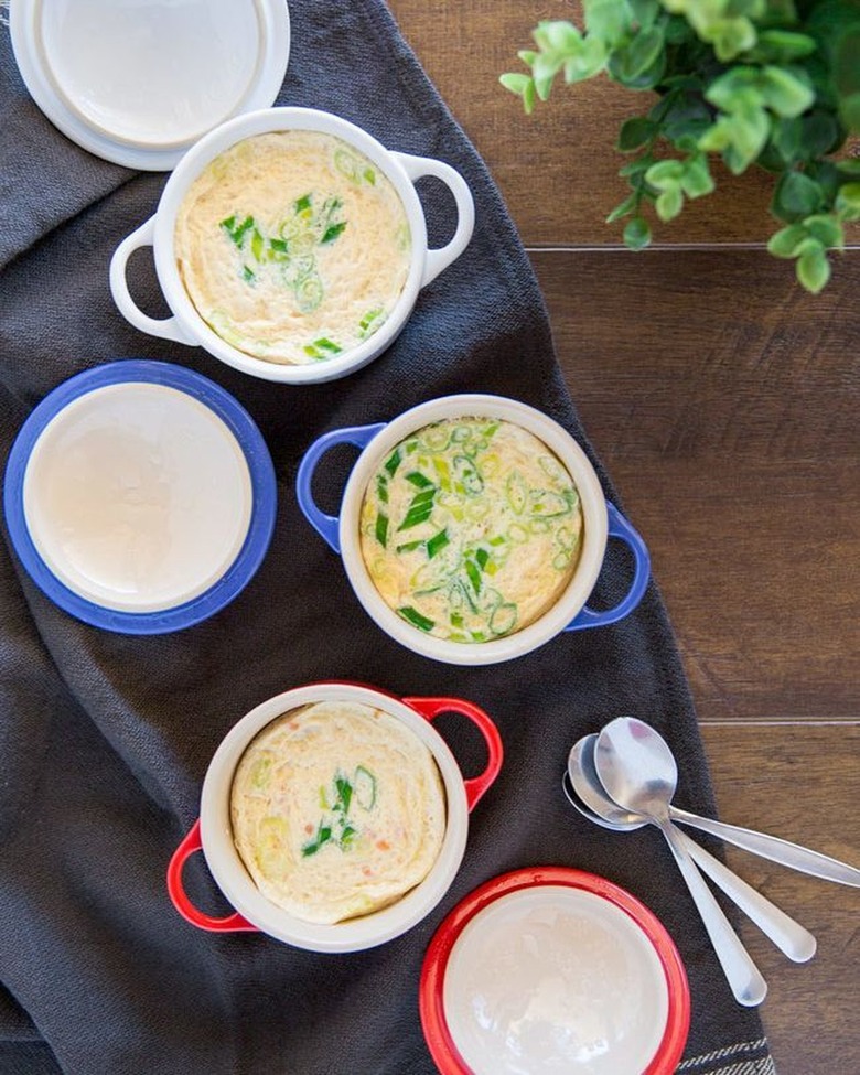 Korean steamed eggs, or gyeran jjim, is deliciously savory and salty. It also has a texture similar to egg soufflé, so it's wonderfully pleasing to eat. Traditionally, the side dish is made in a hot stone bowl on the stovetop, but you can also make it in a microwave.