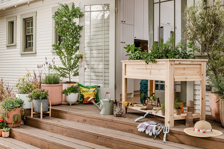Consider a raised garden bed to set the stage for leafy plantings and colorful blooms, plus serve as a storage spot for all your gardening supplies. The beautiful wood construction of this one makes it feel like a statement piece of outdoor furniture all on its own.