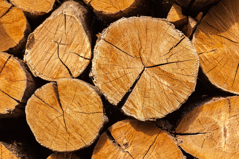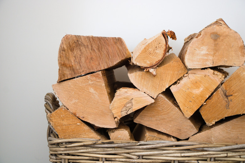 If you chop your own wood, you'll need to place it somewhere out of the rain and snow to season it before use. The time frame for seasoning wood varies based on the type of wood. Oak can take up to two years to dry out, while maple typically takes about six months. Because wet wood is easier to split than dry wood, chop your logs into usable pieces before stacking it for storage. Then, tuck the chopped wood away under a shelter until it's dry.