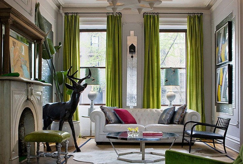 If you want to wow your guests with an unexpected but delightful color combination, this lime green and gray look captured by Francis Dzikowski is for you. The floor-to-ceiling green drapes command attention and give the room a fun and almost whimsical vibe. You can tell right away that this is a space that will make everyone feel welcomed, perfect for hosting parties with your closest friends.