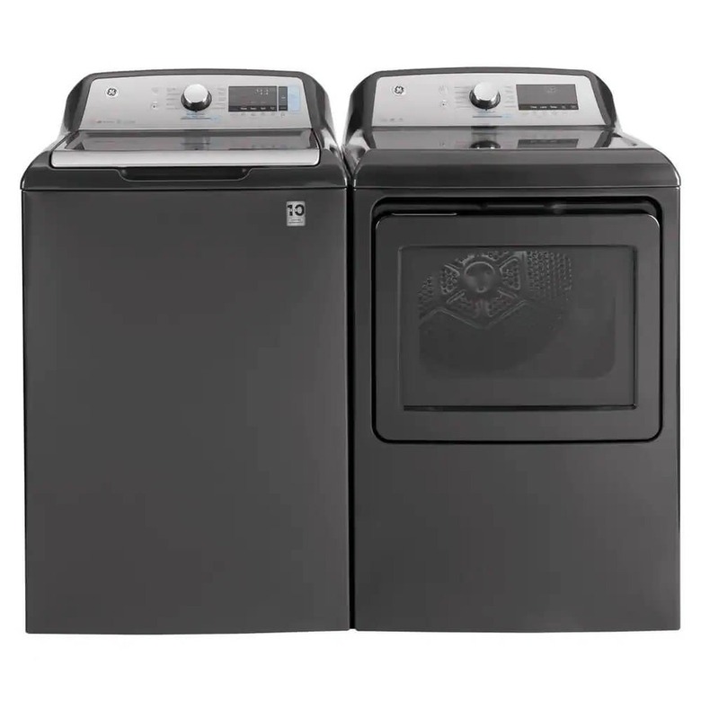 This GE top-loading washer has a 5.2 cubic-foot drum and an auto-dispenser that can hold enough detergent for up to 48 loads. It comes with a water station feature to scrub stains and spots, and even includes SmartDispense, which senses each load's weight and fabric type, allowing it to add the right amount of detergent. There are 13 cycles, including Activewear, Sanitize, and Pre-Wash, and the motor also comes with a 10-year warranty.