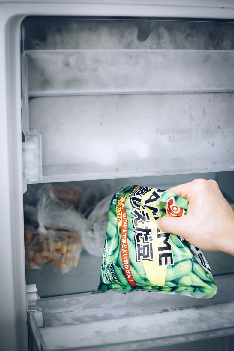 We talked about frozen food a little bit, but this is more about organizing in a way your body will thank you for later. Due to how my kitchen is set up, the freezer and the microwave are directly across from each other. With this in mind, I have my freezer set up so that all the frozen foods that can easily be cooked in the microwave, in under 10 minutes, are at the front of the freezer, making it so I don't have to dig around, waste energy, and get annoyed. This also applies to those frozen meals for two that you can find in your grocery store and throw into a frying pan.