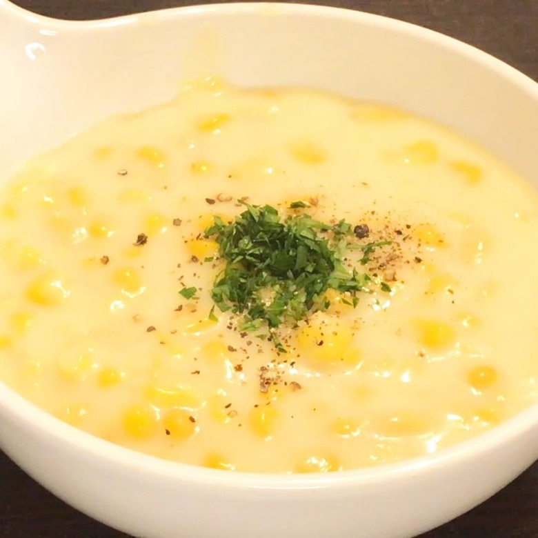 This creamy, crunchy soup is as comforting as it gets. Its list of ingredients is very simple: two types of canned corn, milk, butter, cornstarch, and seasonings. The recipe creator notes that this soup has been made by their mother for decades.