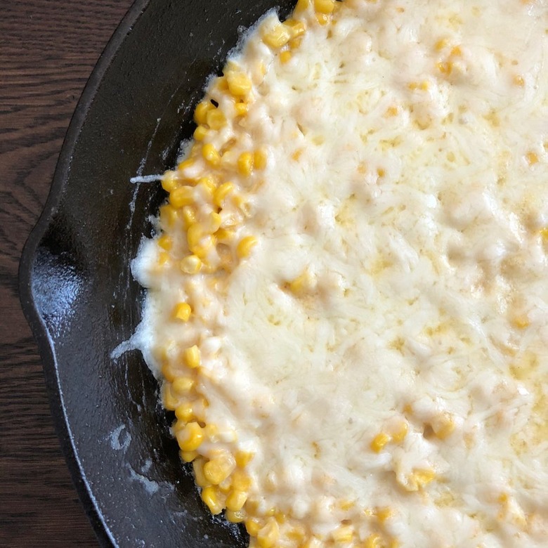 Corn cheese is a surprisingly versatile Korean-American dish made from corn, mayonnaise, sugar, butter, and mozzarella cheese. It's often served as an appetizer at Korean BBQ restaurants, either as a dipping sauce for chips or bread or as a standalone dish eaten with a spoon. It pairs perfectly with soju, a Korean alcoholic beverage.