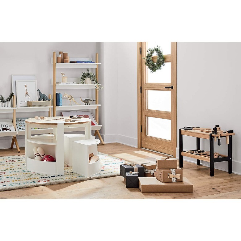 This play table by Crate & Kids is a unique approach to the traditional kids' activity table. Its Scandinavian aesthetic is clean and simple, plus there's built-in storage in the stools — that's a win for everyone.