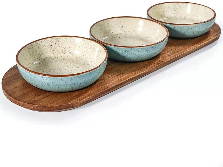This solid wood serving set from Amazon can make all of your outdoor meals look picturesque. They're durable, easy to clean, safe to eat from, and more sturdy than traditional stoneware made from plastic or glass. With multiple sizes, you can serve anything from appetizers to grilled meat as the unbreakable serving platters can bear it all. And with non-slip handles, you can safely serve food al fresco without worrying about dropping your prized culinary creations.