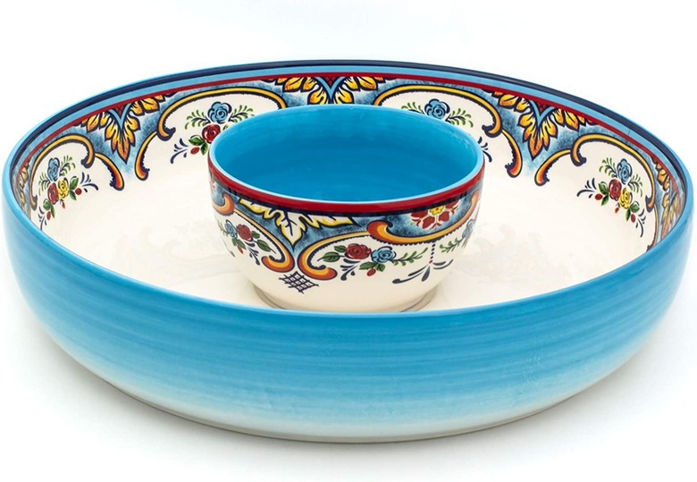 We all love a fun chips and dip platter and this gorgeous piece delivers. By putting your snack on the outside and complementary sauce in the inner bowl, you're crafting an appetizer that everyone wants to taste. Made of high-quality ceramic, this bowl is both dishwasher safe and suitable for microwaving. It's time to bring beautiful stoneware to your outdoor dining parties so you can dine outdoors in style all summer long.