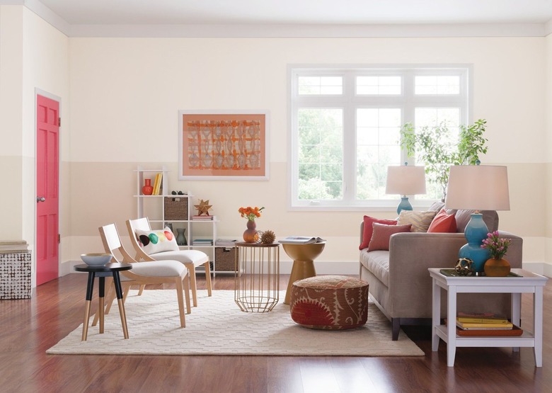 You can't go wrong with white walls, especially if you choose a dimensional shade like Benjamin Moore Chantilly Lace. This color is bright, crisp, and clean, with a subtle depth that keeps it from looking stark. It's a particularly good option if you love your cherry wood floors and want them to be the undisputed star of the room.