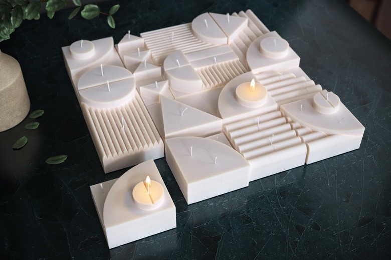 Fueled by coffee, Fridberg spent three sleepless days conducting research on how to bring her wax visions to life. That same month, she created her Pleat, Wave, and Bauhaus candles. (Art meets wax and puzzles in the latter.)