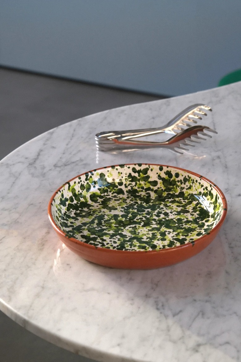 What's more eye-catching than a quirky ceramic? This hand painted terracotta dish with green accents is a definite conversation starter.