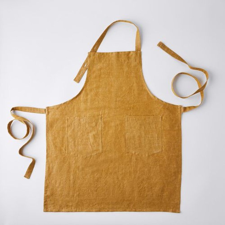 Throwing on a marigold-hued linen apron doesn't just keep you tidy in style — it signifies you mean business at the grill.