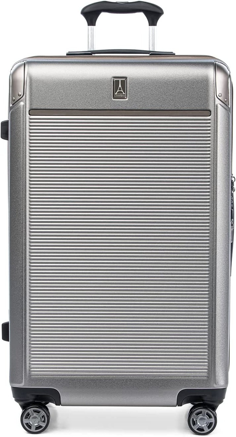 With the sky-high checked luggage prices these days, you want to make sure you're only traveling with the best luggage. This hardside suitcase has an ultra-strong polycarbonate hardshell, making it scratch resistant. And the PrecisionGlide system means you'll experience a buttery smooth roll with the self-aligning magnetic spinner wheels. Talk about high-tech. This TravelPro travel bag has built-in TSA locks, interior zippers, and a water-resistant front pocket to keep valuable documents safe. And for ease, you can grab this luxe hardside suitcase on Amazon.