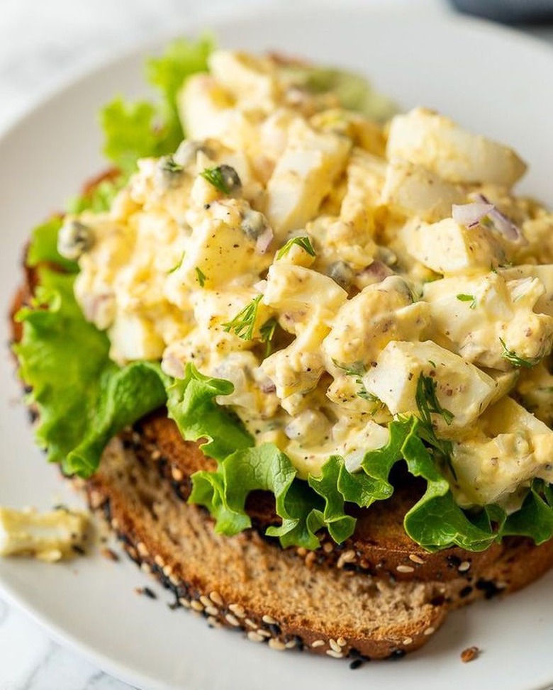 Alternatively, you can follow @brunchwithbabs' egg salad recipe, which calls for mayonnaise, mustard, salt, ground black pepper, fresh dill, paprika, and pickle juice. Yum!