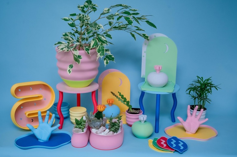 Ford's designs are quirky, colorful, and fun, including bright pink side tables, wiggle planters, and fruity coasters. She finds inspiration through her love of ceramics. Once she started working with Cerna, Ford spent about a year getting into the history of ceramics and took up wheel throwing — something she would spend a lot more time doing if she had a few extra minutes in the day.